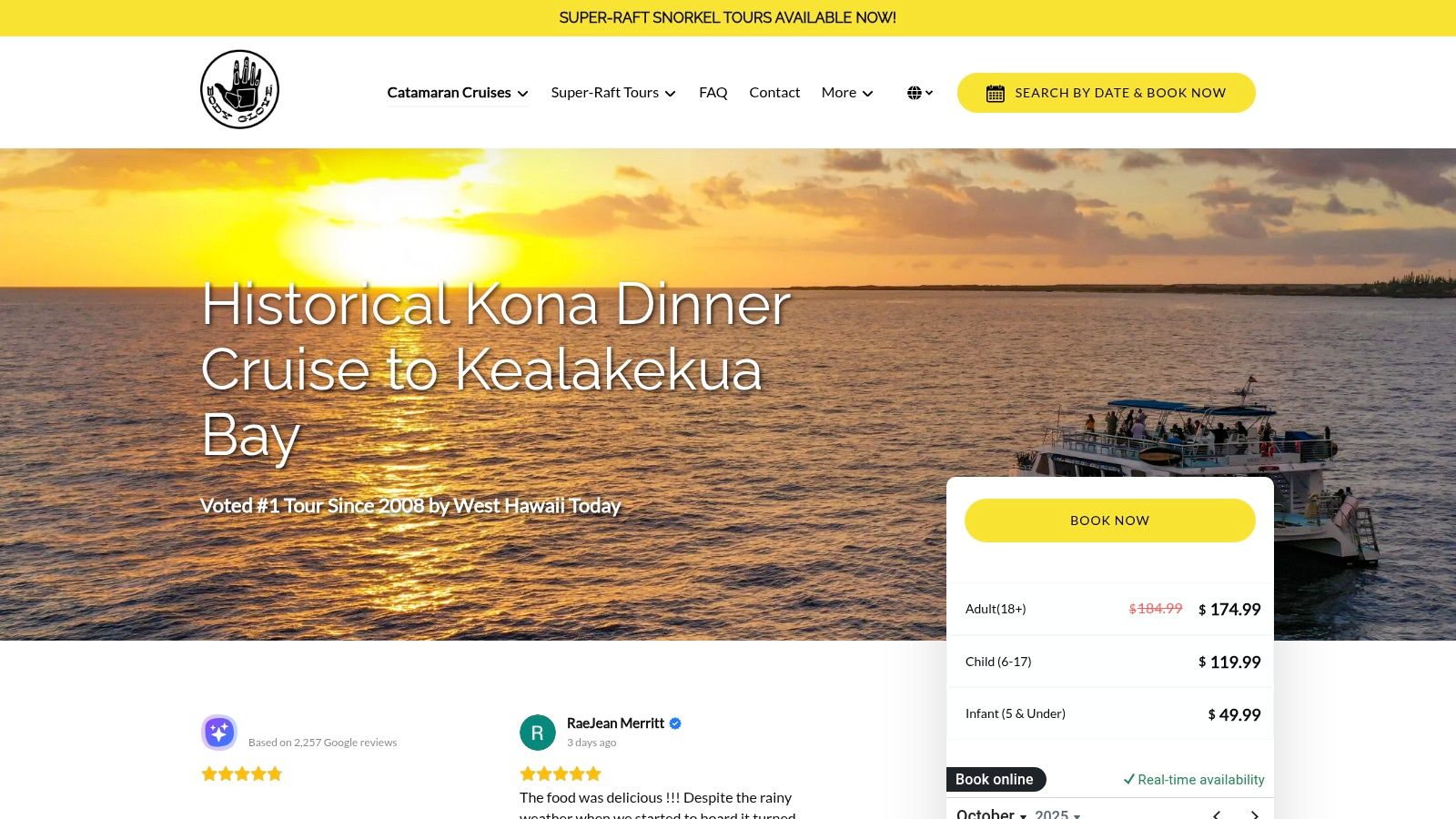 For those seeking an agile and intimate tour of Kealakekua Bay, Sea Quest Hawaii’s website is a top booking platform. This local operator specializes in small-group rigid-hull inflatable raft tours, which allow for a more adventurous experience exploring the Kona coast’s sea caves and lava tubes on the way to the Captain Cook monument. Their site clearly details their flagship “Exclusive Captain Cook Snorkel Tour,” providing a direct online booking system with published pricing and availability. The small-group format ensures a personalized snorkeling adventure.