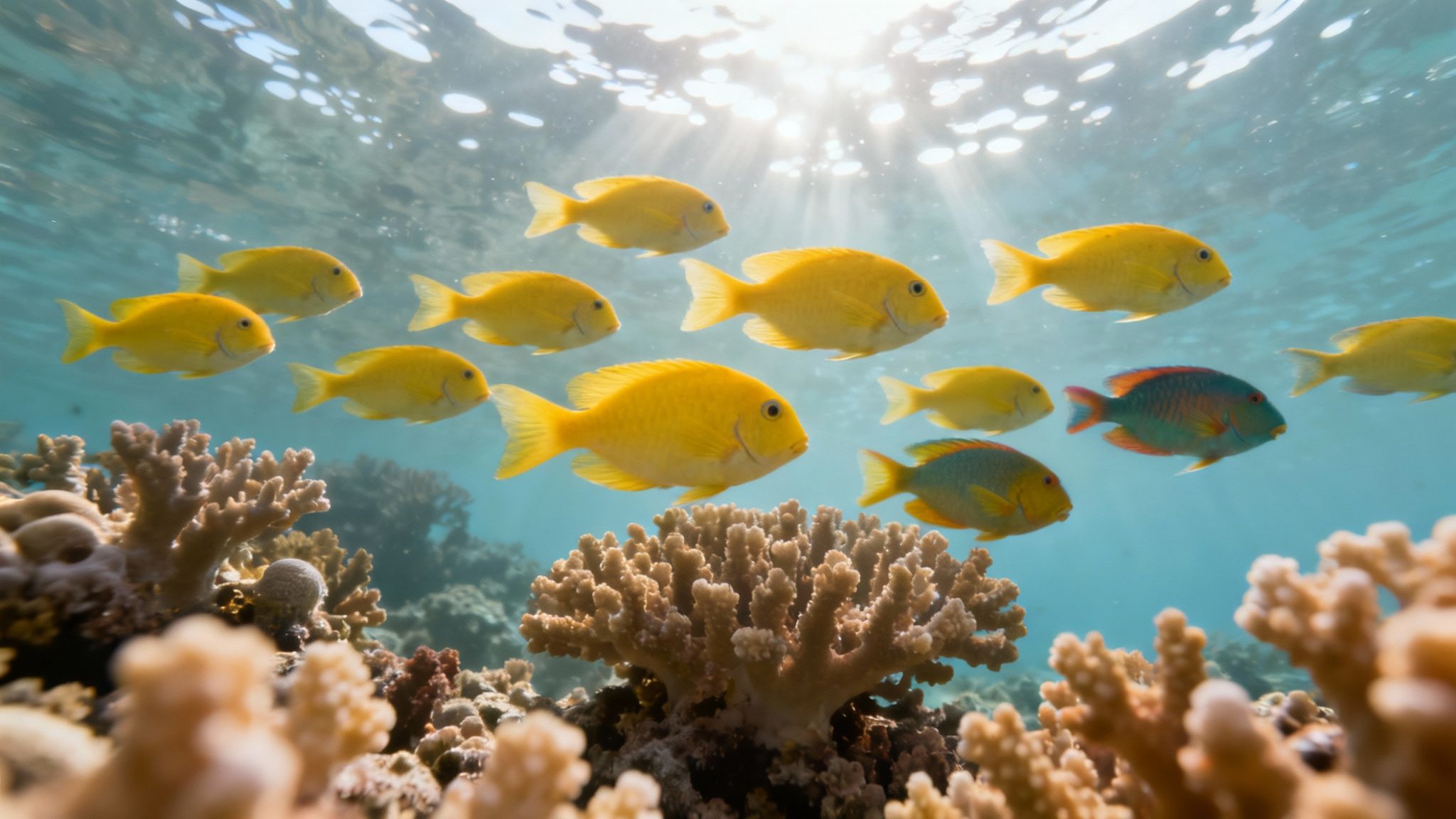But the yellow tang are just the opening act. The reef itself is a living canvas, painted with a true kaleidoscope of colors.