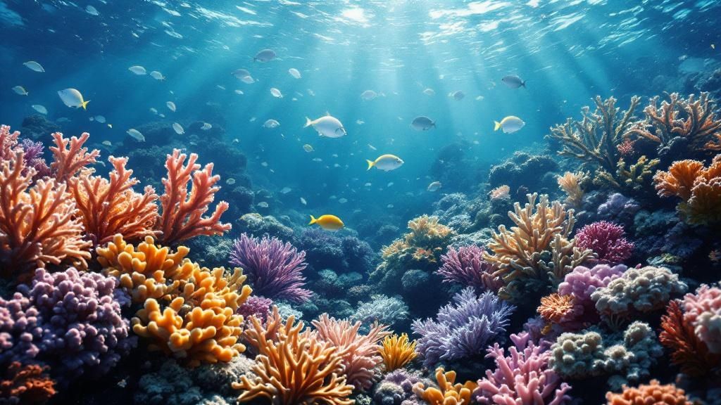 The water clarity is something you have to see to believe, often letting you gaze more than 100 feet down into the blue. With visibility like that, you won't miss a thing. The foundation of this vibrant community is the sprawling coral gardens, full of intricate branching, boulder, and cauliflower corals. They aren't just pretty rocks; they're the apartment buildings, restaurants, and nurseries for hundreds of species, making the whole reef feel alive.